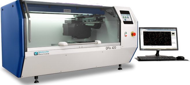 将 Y187(含 bait cDNA 文库)和 Y2HGold(含 prey cDNA 文库)菌株以 0.8mL 等比例混合于 2L 灭菌烧瓶。50mL 2×YPDA 培养基,30℃ 震荡培养 20 小时(50rpm)。杂交后细胞用 15mL 0.9% NaCl 重悬,涂布于四缺培养基(SD/-Leu-Trp-His-Ade,含 5mM 3-AT)。30℃ 培养 7 天后,直径 1-2mm 的菌落判定为潜在蛋白互作阳性。用高通量微生物克隆挑选系统 QPix 420(Fig2)或手动的方式将蛋白互作的酵母菌单克隆挑取到含 10uL 新鲜 KBB 裂解液的 96 孔板中。100℃ 热处理 5min 后即可进行第一轮 Barcode-indexed PCR。