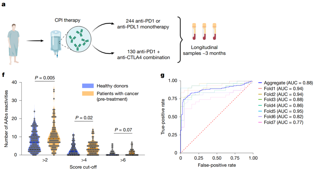 与健康人相比,癌症患者拥有更高水平且独特的自身抗体谱,机器学习模型可据此高精度区分两者。