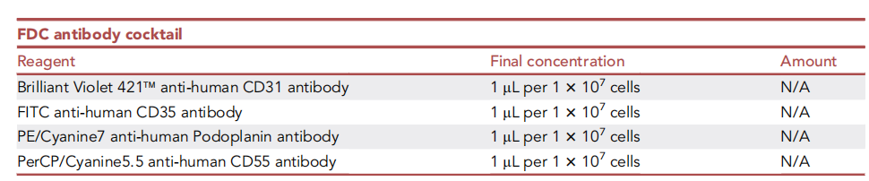 离心速度和时间:按照 300g 离心 25 分钟进行离心,以确保 FDCs 精确分离。