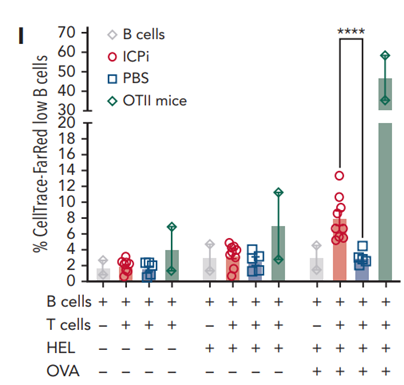 ICPi治疗的HOD+OTII+小鼠表现出高水平的红细胞自体抗体,同时引起红细胞压积和血红蛋白降低,血清胆红素升高以及网状细胞增多。另外,ICPi治疗的小鼠表现出FoxP3+ Treg细胞和Tr1 Treg细胞降低,而促炎性FN-γ+ TH1 和IL-17+ TH17 细胞增加。