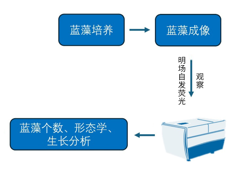 Molecular Devices 公司的高内涵分析软件 MetaXpress 可对藻类的细胞进行计数与大小等形态学参数测定,通过监测叶绿素及藻蓝蛋白这两种关键的光合色素荧光强度变化,为开展蓝藻细胞生长代谢活动相关研究提供定量化的数据。